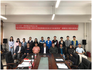 为做好“十三五”国家重点研发计划“预制混凝土构件工业化生产关键技术及装备”的组织实施,由我校机械工程学院承担的课题三“复杂预制构件混凝土数字化智能精确布料技术与设备研发”(2017YFC0704003)执行情况检查会于9月12日在我校机械工程学院丁1-303会议室召开。检查会由机械工程学院副院长石怀涛主持。交通工程学院院长孙红教授,北方重工集团有限公司设计院副院长张伟,鞍重股份有限公司董事、总经理刘向南,大连三川集团总经理孙辉,沈阳万融现代建筑有限公司副总经理吴昌鹏,石家庄铁道大学张明亮,以及各课题技术骨干等20余人参加了会议。